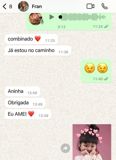 Com formação profissional em Cabeleireira e Design de Sobrancelhas e especialização em cortes femininos, Aninha também é maquiadora profissional com curso completo na área. Sua dedicação, técnica e atenção aos detalhes tornam cada atendimento único, levando autoestima e elegância para suas clientes.
